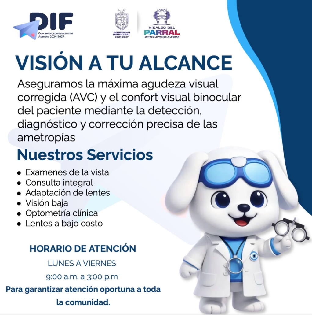 El Gobierno de Parral, a través del Desarrollo Integral de la Familia (DIF) Municipal, mantiene en operación el programa “Visión a tu Alcance”, una estrategia enfocada en atender de manera directa uno de los aspectos más importantes de la salud: la vista. Este programa busca detectar a tiempo padecimientos visuales, brindar orientación profesional y ofrecer soluciones accesibles para quienes lo requieren.