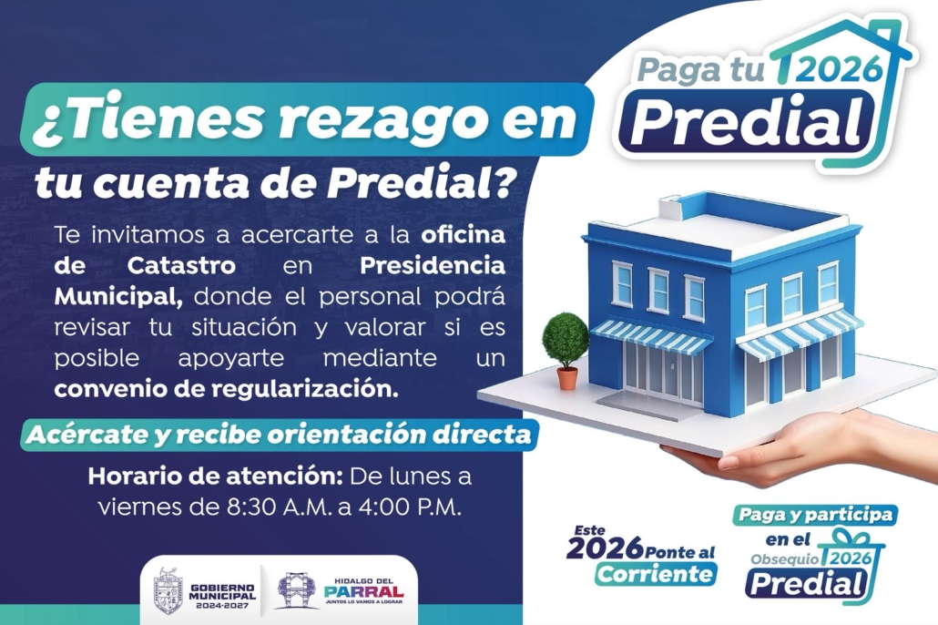 Con el objetivo de apoyar la economía de las familias parralenses y brindar alternativas reales a las y los contribuyentes, el presidente municipal Salvador Calderón anunció la implementación de convenios de pago dirigidos a quienes presentan rezagos en el Impuesto Predial.