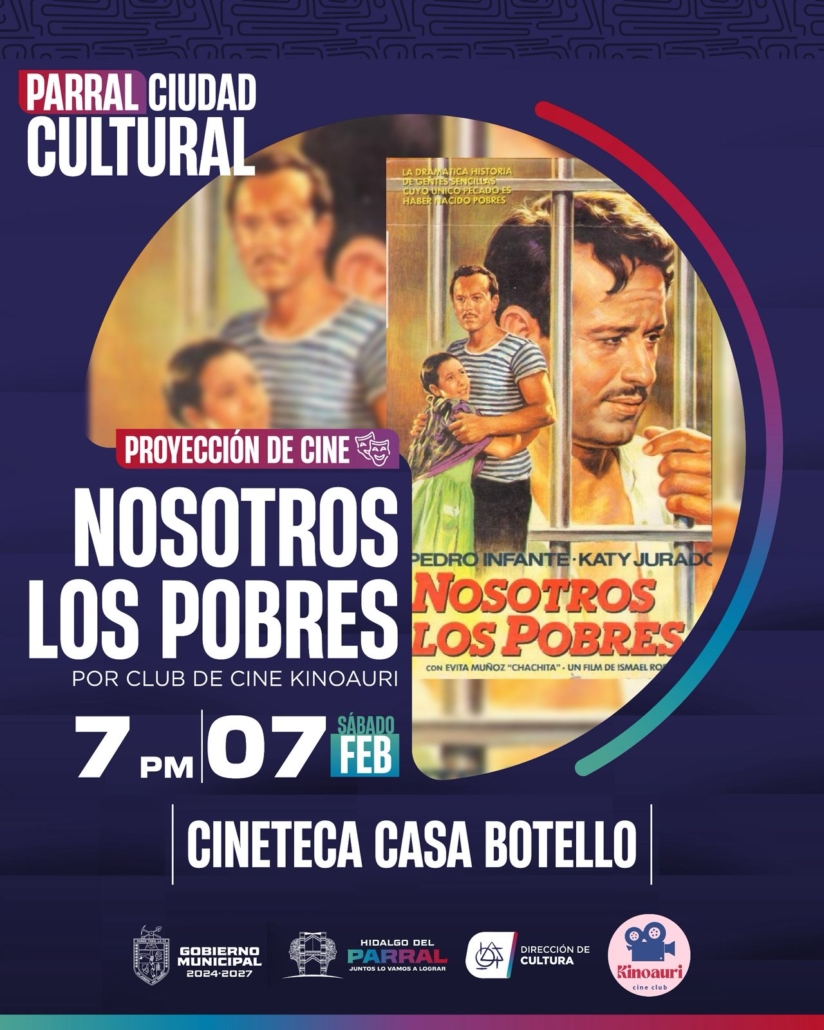 El Gobierno de Parral, a través de la Dirección de Cultura, invita a la ciudadanía a la proyección de la emblemática película “Nosotros Los Pobres”, que se llevará a cabo el próximo 7 de febrero en la Cineteca de la Casa Botello, en punto de las 7:00 de la tarde, como parte de las acciones para fomentar el acceso gratuito a la cultura.