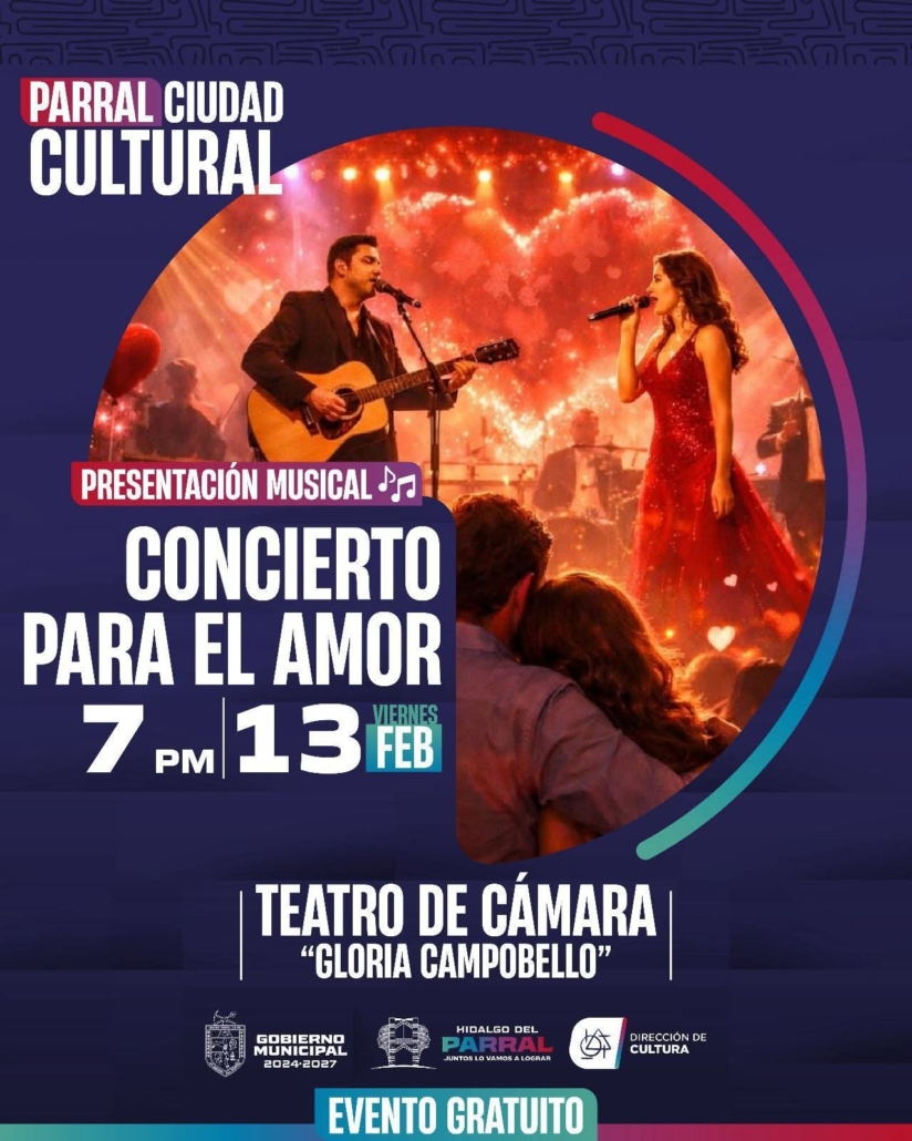 El Gobierno de Parral llevará a cabo el “Concierto para el Amor” este próximo 13 de febrero a las 19:00 horas. La sede será la Casa de la Cultura, recinto que abrirá sus puertas para recibir a la ciudadanía en una jornada diseñada para fortalecer los vínculos afectivos y promover la apreciación artística en el marco de las festividades de la temporada.