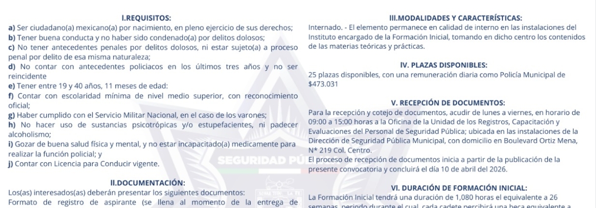 CONVOCA DSPM A FORMAR PARTE DE LA POLICÍA MUNICIPAL DE PROXIMIDAD 2026