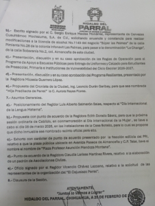 Orden del día de la sesión de Cabildo 50