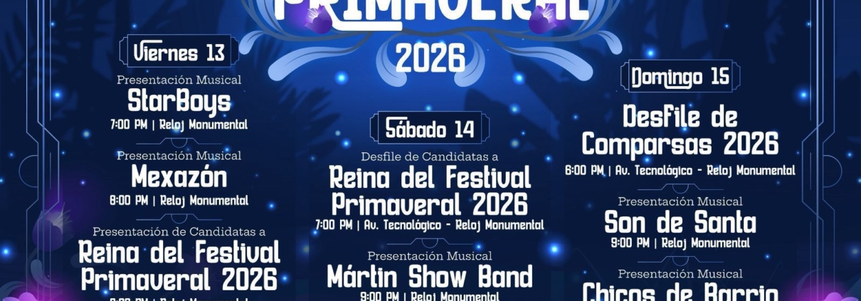Las actividades darán inicio este viernes 13 de marzo en el Reloj Monumental, a partir de las 7:00 de la tarde, con un ambiente lleno de música y tradición.
