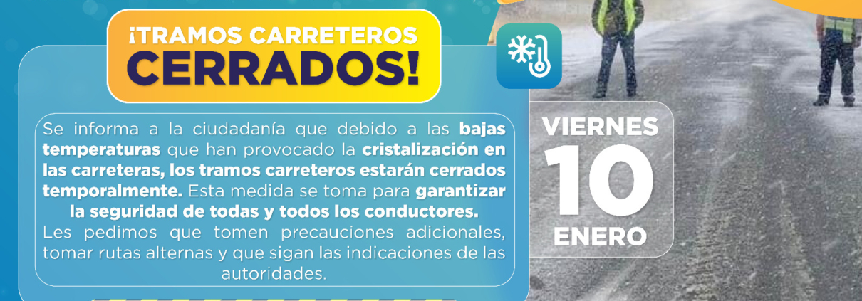 El Gobierno de Parral anuncia a la ciudadanía que el tramo carretero Parral-Vía Corta se encuentra cerrado ante la caída de nieve, por lo que exhortan a la ciudadanía atender las recomendaciones emitidas por las autoridades.