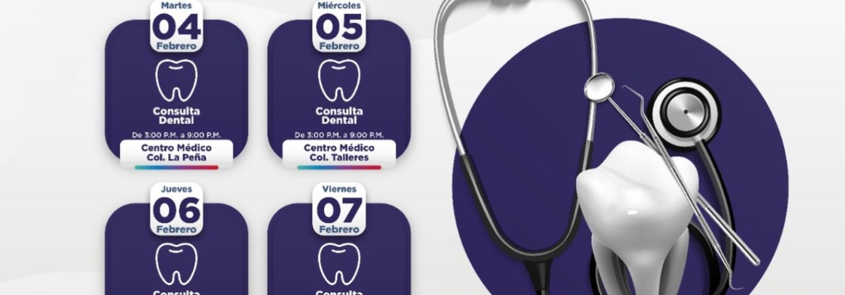 También el miércoles 5 de febrero el servicio Dental se hará presente en el Centro Médico de la colonia Talleres de 3:00 de la tarde a 9:00 de la noche.
