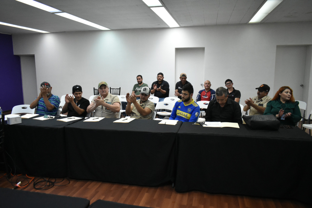 Los presentes en salón “Juan Rangel de Biezma” de mina “La Prieta”, pudieron conocer los detalles en cuanto al manejo de la documentación del ganado, para garantizar la legal procedencia y todo lo relacionado al control sanitario del animal, con el objetivo de evitar que ganado enfermo entre al proceso de sacrificio.