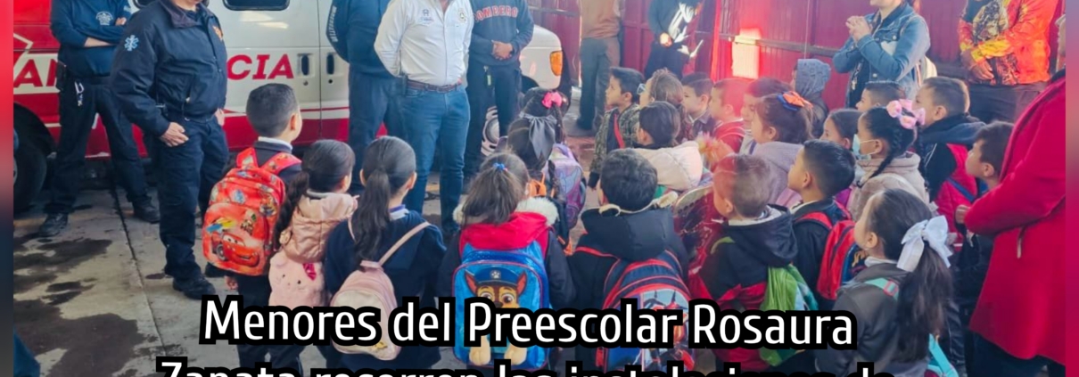 Un total de 26 niñas y niños, así como maestras del preescolar Rosaura Zapata acudieron a realizar un recorrido a las instalaciones de Protección Civil y el H. Cuerpo de Bomberos en donde conocieron sus instalaciones y la operatividad de los elementos para salvaguardar la integridad de las familias.