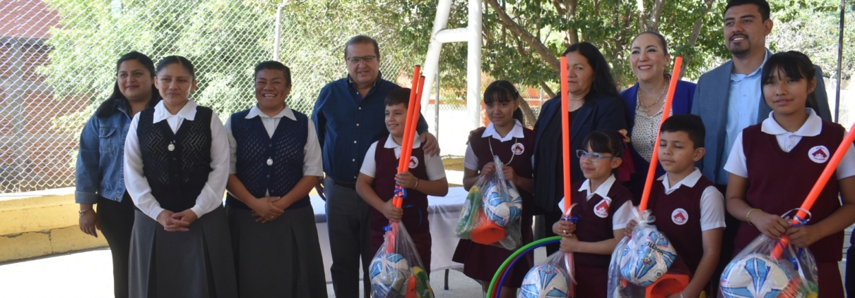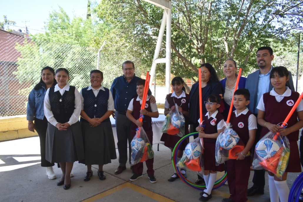 Como parte del programa “Presidente en tú Escuela”, entregó kits deportivos
