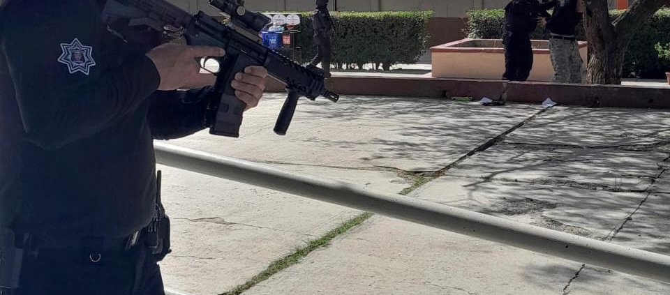 Como parte de los simulacros que se desarrollan de manera periódica el Gobierno de Parral, encabezado por Chava Calderón a través de la Dirección de Seguridad Pública Municipal realizó una intervención de portación o uso de armas en el CBTis 228 con el objetivo de brindar herramientas que les permita actuar en una situación de riesgo.