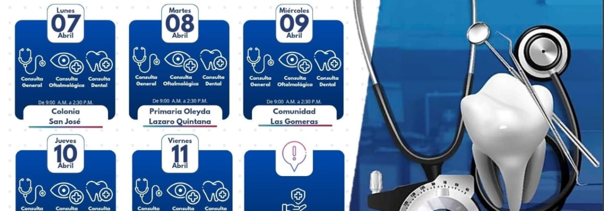 Asimismo, la unidad dental se colocará el lunes y miércoles en el centro médico de la Talleres de las 15:30 a las 21 horas, martes y jueves en el centro médico de La Peña y los viernes en el estacionamiento frontal de Presidencia Municipal.