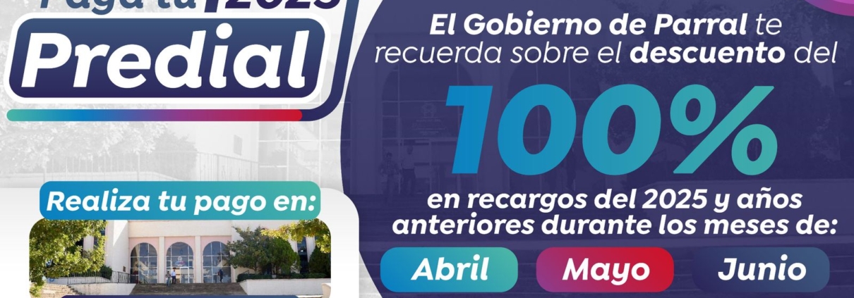 El Gobierno de Parral que encabeza el alcalde Salvador Calderón, a través de la Tesorería Municipal, dio inicio a una campaña de descuento del 100% en recargos generados por el Impuesto Predial correspondientes al año 2025 y ejercicios anteriores.