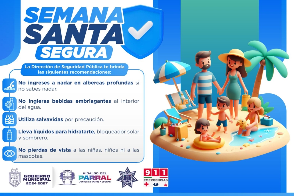 El Gobierno de Parral, a través de la Dirección de Seguridad Pública Municipal, emitió una serie de recomendaciones dirigidas a quienes planean acudir a balnearios durante el periodo vacacional de Semana Santa, como parte del operativo preventivo “Semana Santa Segura 2025”.
