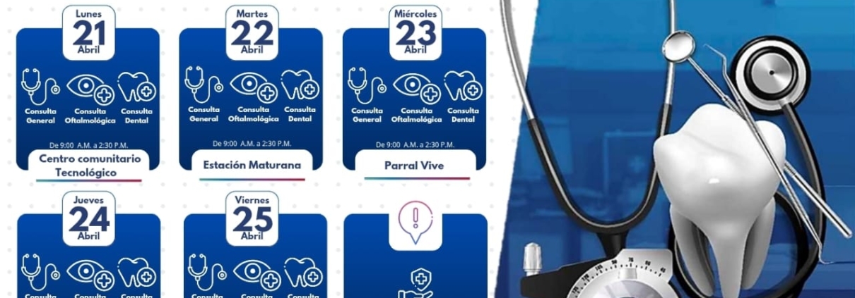 Del lunes 21 al viernes 25 de abril, personal médico capacitado estará brindando consultas generales, atención dental y servicios de oftalmología. Esta iniciativa tiene como finalidad ofrecer soluciones básicas de salud y detectar de manera oportuna cualquier situación que requiera seguimiento especializado.