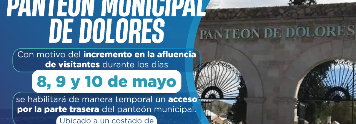 La apertura de este acceso, ubicado en la parte trasera del camposanto sobre la Avenida Tecnológico, se realizará de manera temporal durante los dÃas 08, 09 y 10 de mayo. Esta medida responde a la necesidad de ofrecer alternativas de entrada y salida para prevenir aglomeraciones, mejorar la circulación y brindar una atención más ordenada a quienes visitan a sus seres queridos.