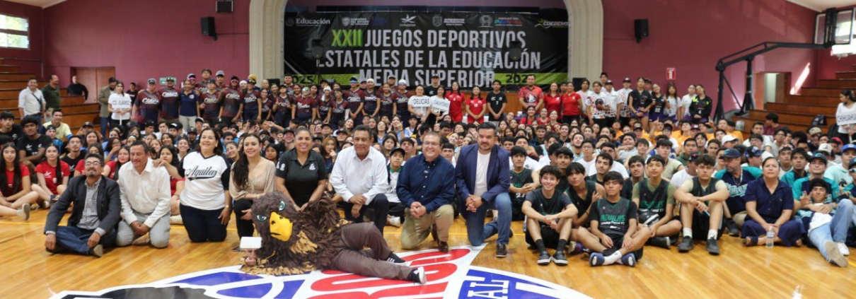 El presidente municipal Salvador Calderón encabezó la ceremonia inaugural de las competencias estatales organizadas por el Consejo Nacional para el Desarrollo del Deporte en la Educación Media Superior (COEDEMS), evento que reunió a más de 80 equipos provenientes de 25 instituciones educativas de todo el estado.