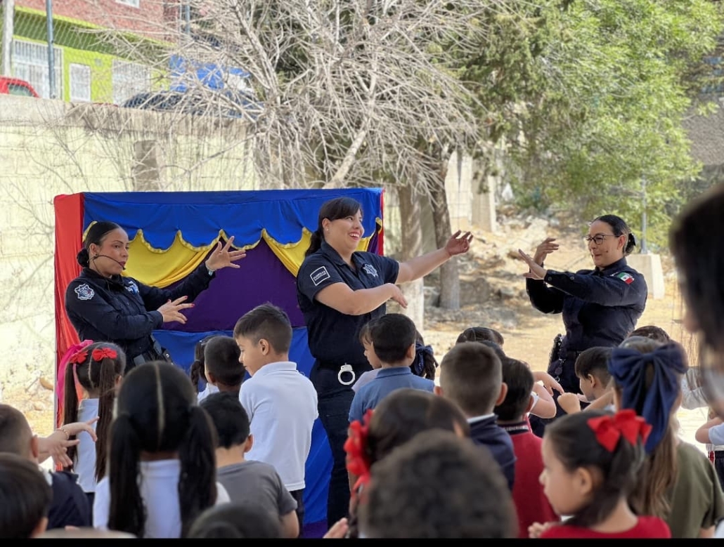 Personal de la corporación acudió al preescolar Miguel Hidalgo en donde tuvieron un acercamiento con 12 padres de familia abordando temas como los valores que se aprenden en casa, posteriormente se reunieron con 85 alumnos, y 8 docentes para presentar obra teatral “Cuidado con los Extraños”, para brindar conocimientos en materia de prevención a robo de infantes, y al final en una participación activa de los menores se realizó un baile con botargas.