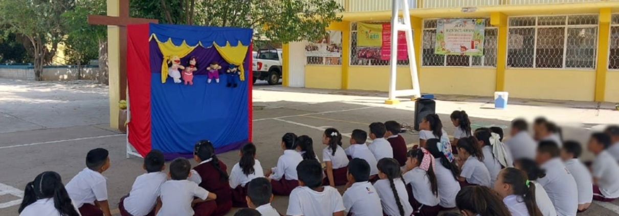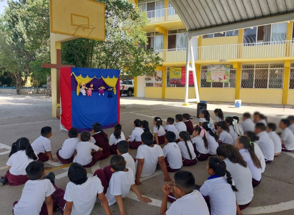 Agentes de la Dirección de Seguridad Pública Municipal (DSPM), a través de la Unidad de Programas Preventivos, llevaron a cabo una intervención en la Casa Hogar con alumnos de 1° a 3° grado, presentando la obra teatral “Yo así Juego”. La puesta en escena, complementada con una dinámica de baile con botargas, tiene como propósito la prevención del acoso escolar, reforzando la cercanía entre autoridades y población infantil.