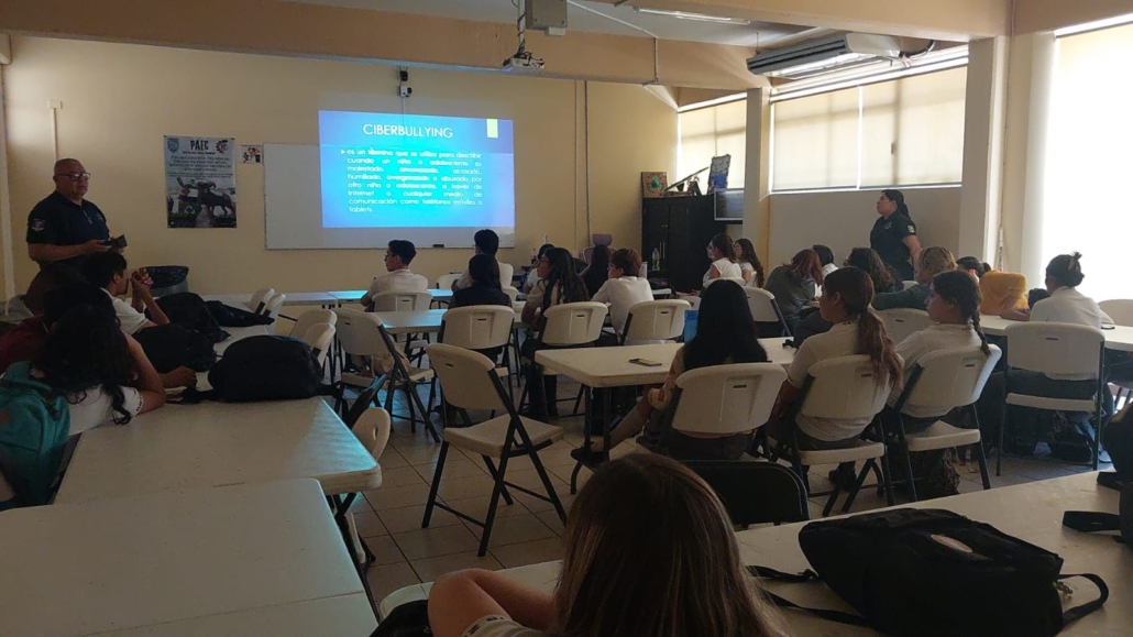 Posteriormente, en el CBTis 228, los agentes impartieron una charla sobre delitos cibernéticos, enfocándose en las consecuencias legales y emocionales que puede implicar el mal uso de redes sociales y plataformas digitales. Este encuentro permitió a los jóvenes reflexionar sobre el uso responsable de la tecnología y la importancia de proteger su privacidad en línea.