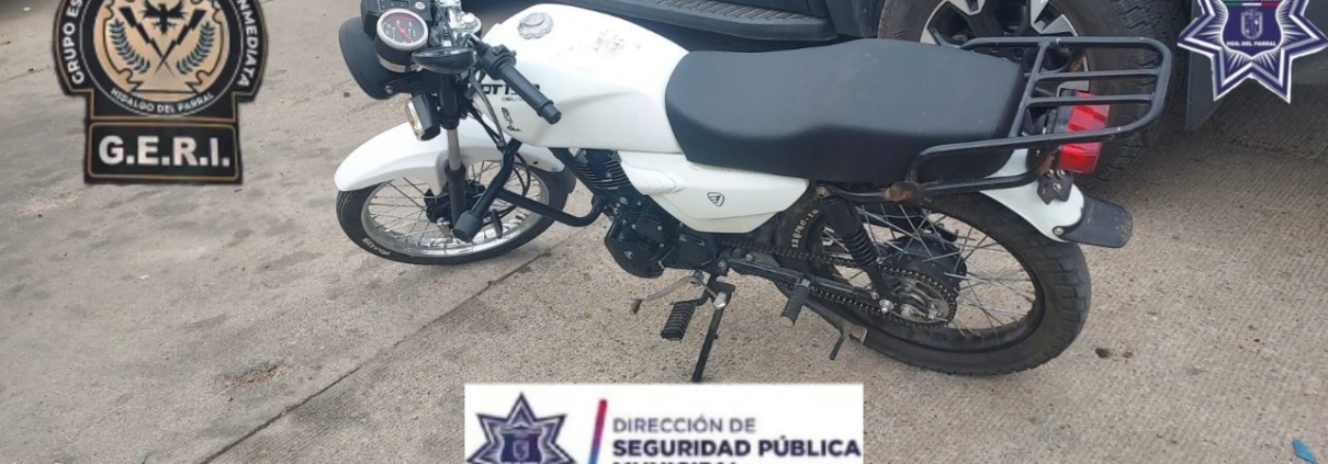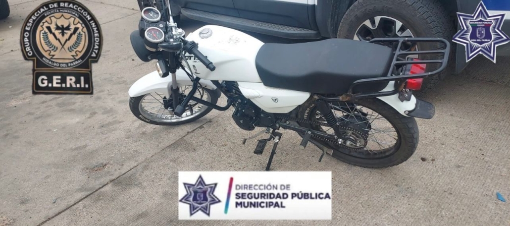 Una motocicleta con reporte de robo fue localizada este martes en la colonia El Quijote, luego de una intervención rápida por parte de elementos del Grupo Especial de Reacción Inmediata (GERI) de la Dirección de Seguridad Pública Municipal.