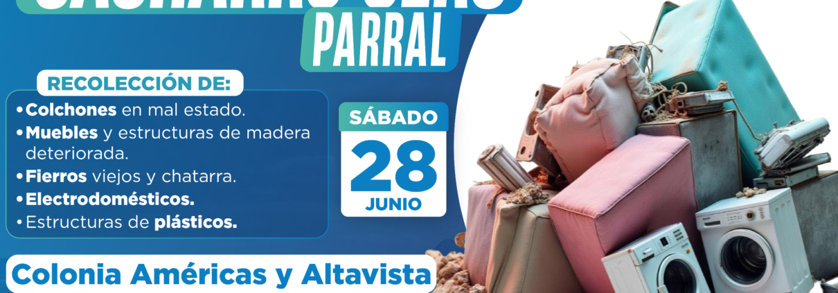El Gobierno de Parral informa que este sábado 28 de junio se llevará a cabo una jornada intensiva de descacharrización en las colonias Américas y Altavista, como parte de la campaña permanente “Cacharro Cero”, implementada para preservar la salud pública y mejorar las condiciones del entorno urbano.