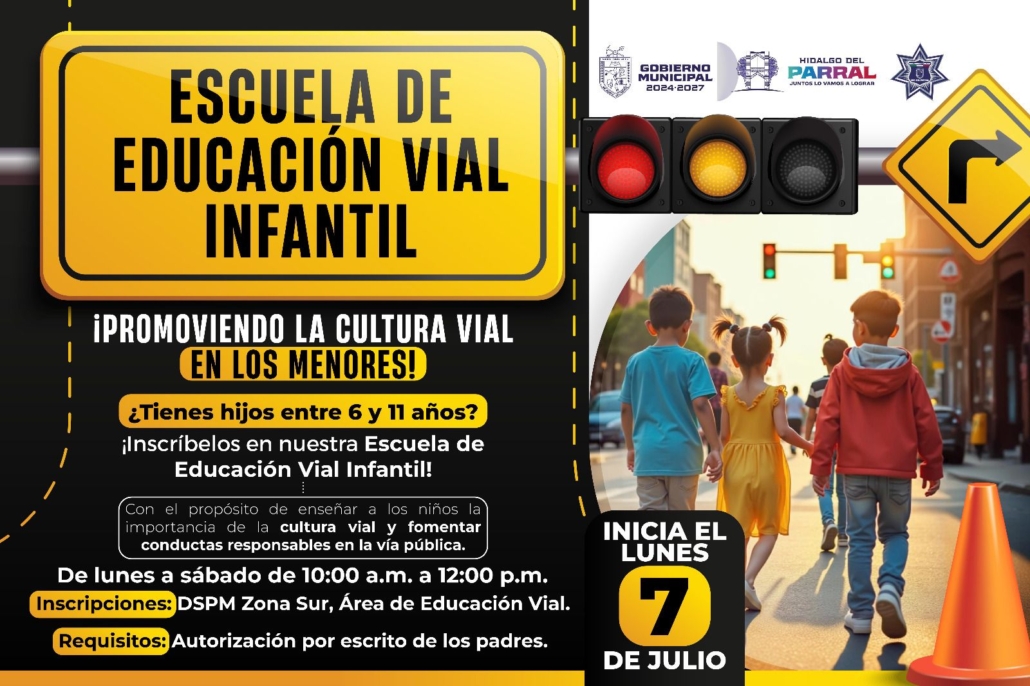Con el propósito de promover una mayor responsabilidad ciudadana desde edades tempranas, el Gobierno de Parral, a través de la Dirección de Seguridad Pública Municipal (DSPM), dio a conocer que ya se encuentran abiertas las inscripciones para la Escuela de Educación Vial, dirigida a niñas y niños de entre 6 y 11 años de edad.