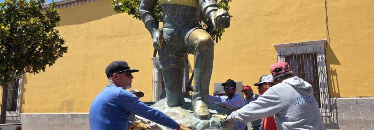El Gobierno de Parral, a través de la Dirección de Obras Públicas, inició este jueves la remoción de la estatua de Juan Rangel de Biezma, figura fundadora de la ciudad, con el propósito de reubicarla en la Plaza Principal, lugar que originalmente albergó esta emblemática escultura.