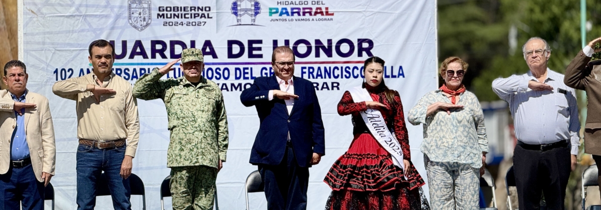En un acto solemne y significativo, el presidente municipal Salvador Calderón encabezó la guardia de honor con motivo del 102º aniversario luctuoso del General Francisco Villa, figura clave en la historia de México y parte fundamental de las raíces de esta ciudad.