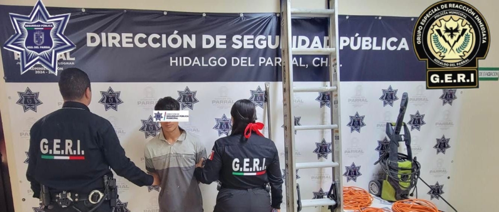 GERI detiene a presunto ladrón con artículos robados en la Col. Paseos de Almanceña