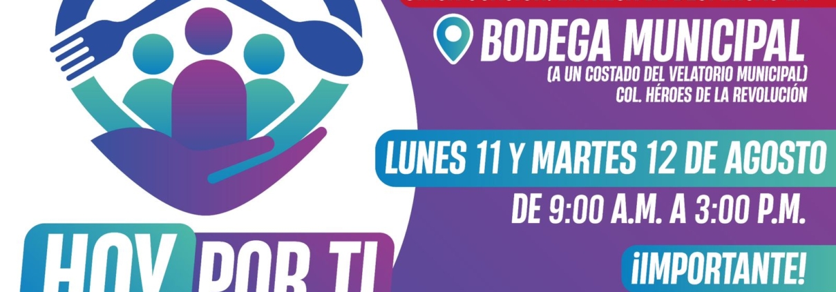 La distribución se realizará en un horario de 9:00 de la mañana a 3:00 de la tarde, en las instalaciones de la Bodega Municipal, ubicada a un costado del Velatorio Municipal, en la colonia Héroes de la Revolución.