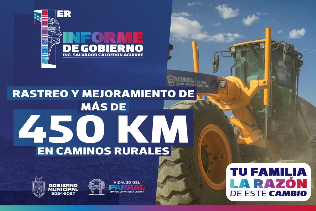 En el primer año de la administración municipal encabezada por el alcalde Salvador Calderón Aguirre, se han rehabilitado 450 kilómetros de caminos rurales, como parte de un programa integral de infraestructura vial que busca atender a las comunidades más alejadas de Parral. Esta acción ha significado una mejora tangible en la vida de miles de familias, al reducir tiempos de traslado, facilitar el acceso a servicios básicos y fortalecer la unión entre localidades.