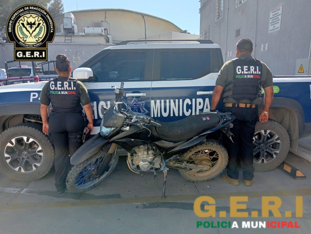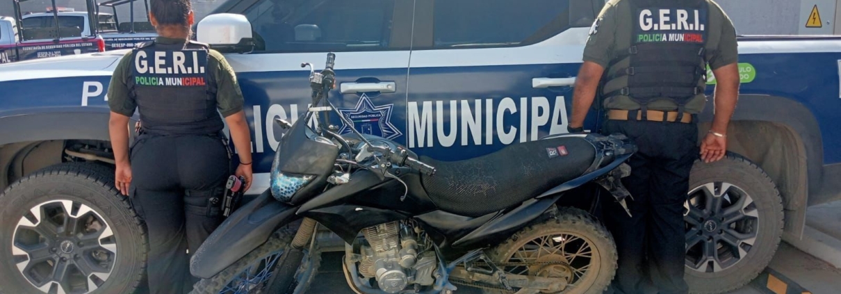 Elementos del Grupo Especial de Reacción Inmediata (GERI) de la Dirección de Seguridad Pública Municipal (DSPM) lograron la recuperación de una motocicleta con reporte de robo, gracias a labores de patrullaje y respuesta inmediata a través del sistema de emergencias 911.