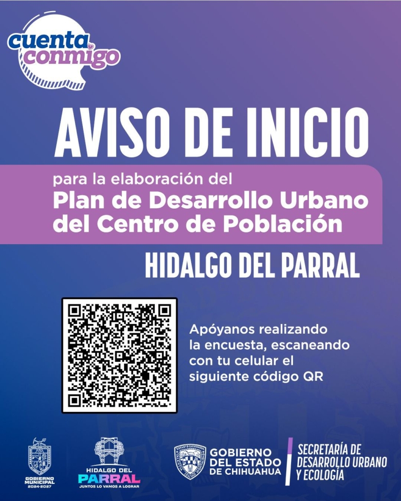El Gobierno de Parral hace un llamado a las y los habitantes a sumarse a este proceso que definirá un modelo de ciudad más organizada, funcional y equitativa. La participación de cada persona será decisiva para establecer un ordenamiento urbano responsable y sostenible.