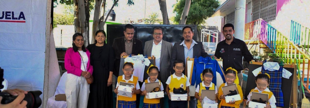 Entrega Alcalde Salvador Calderón uniformes y calzado escolar en el Jardín de Niños Gabriela Mistral