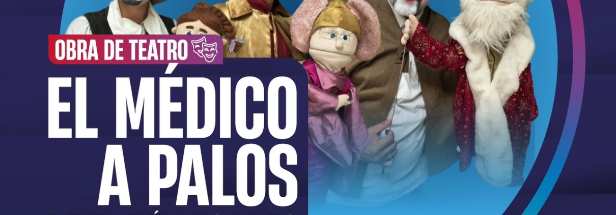 El Gobierno de Parral, a través de la Dirección de Cultura, invita a las familias parralenses a disfrutar de la puesta en escena “El Médico a Palos”, una divertida obra dirigida por Rubén Torres que se presentará el próximo sábado 04 de octubre en el Teatro de Cámara Gloria Campobello.