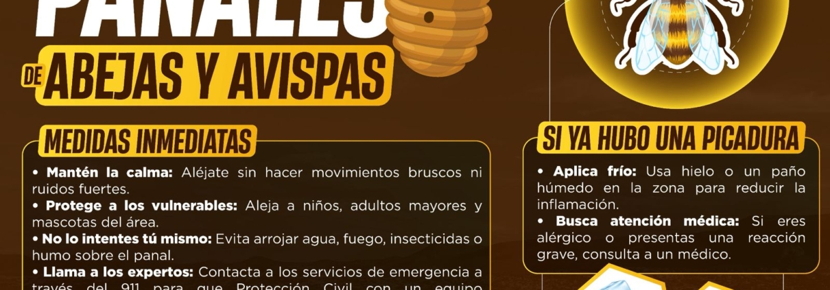 La dependencia exhorta a no intentar retirarlos por cuenta propia, ya que esta acción puede representar un riesgo considerable, especialmente para personas alérgicas, menores de edad o adultos mayores. Se recomienda mantener la calma, alejarse del área, evitar hacer ruido o movimientos bruscos y comunicarse de inmediato al número de emergencia 9-1-1, donde personal capacitado acudirá al sitio.