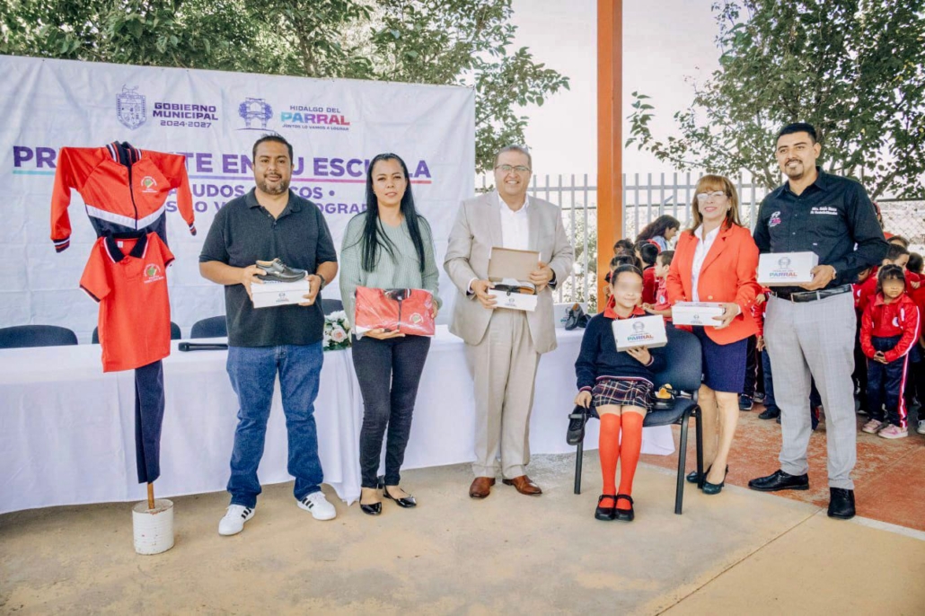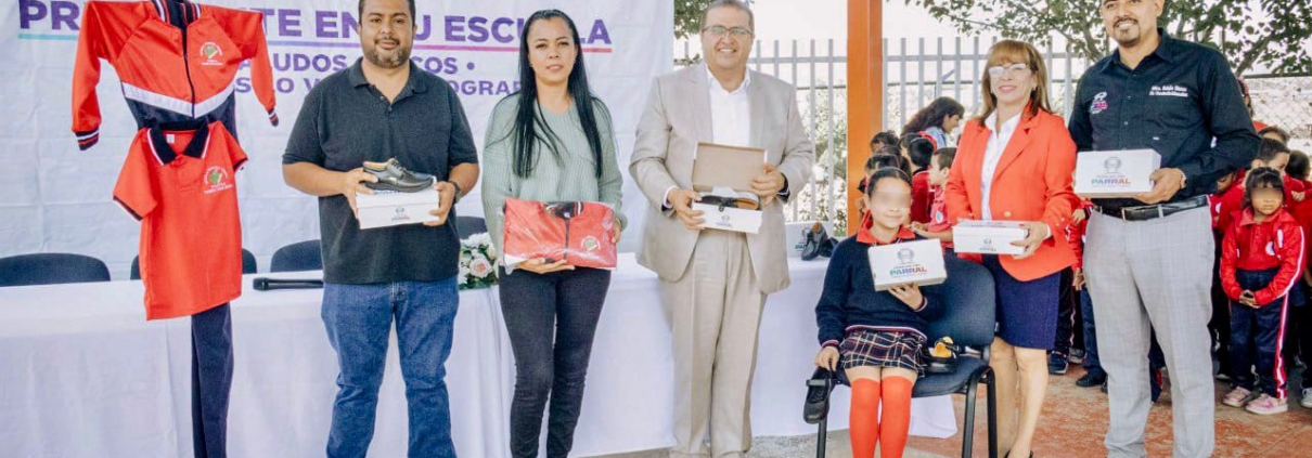 Entrega alcalde Salvador Calderón uniformes escolares en la primaria Carmen Tarín Ibarra