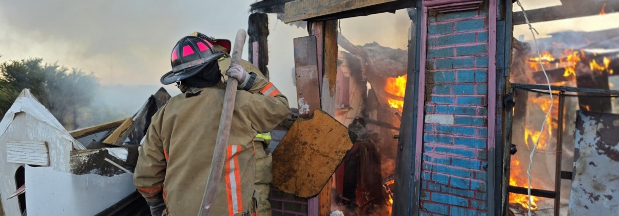 Atiende H. Cuerpo de Bomberos incendio en cuarto de madera sobre carretera Vía Corta