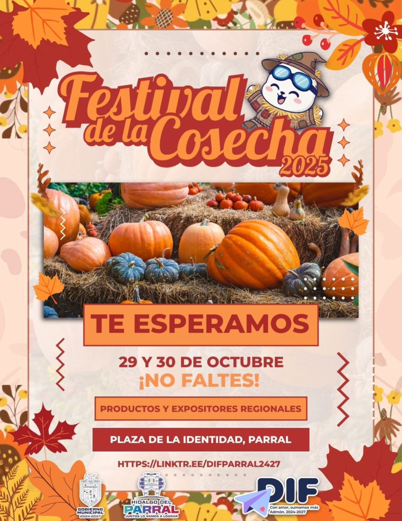 El Gobierno de Parral invita a comerciantes, productores y emprendedores locales a participar en la Feria de la Cosecha 2025, que se llevará a cabo los próximos 29 y 30 de octubre en la Plaza de la Identidad. Este importante evento busca fortalecer la economía local y brindar un espacio de promoción para los productos del municipio y la región.