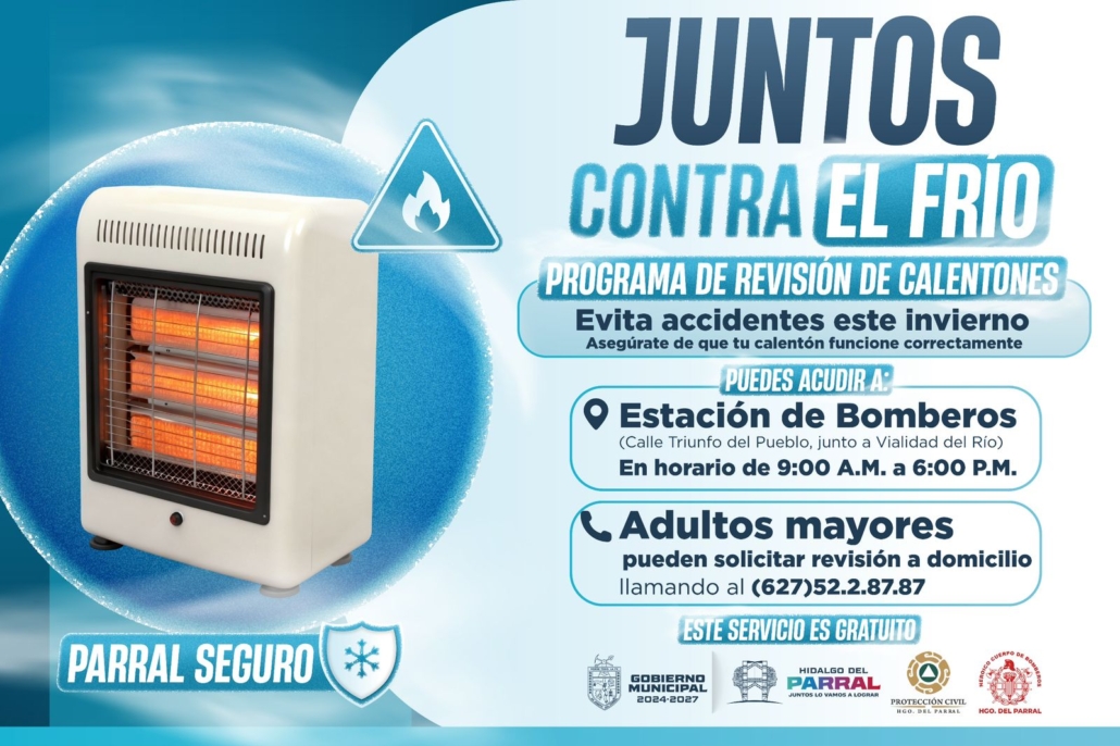 El Gobierno de Parral hace un llamado a la ciudadanía para revisar a tiempo sus equipos de calefacción y evitar incidentes por fugas de gas o acumulación de monóxido de carbono. Estas acciones forman parte del esfuerzo municipal por fortalecer la prevención y proteger la integridad de las familias ante la llegada de las bajas temperaturas.