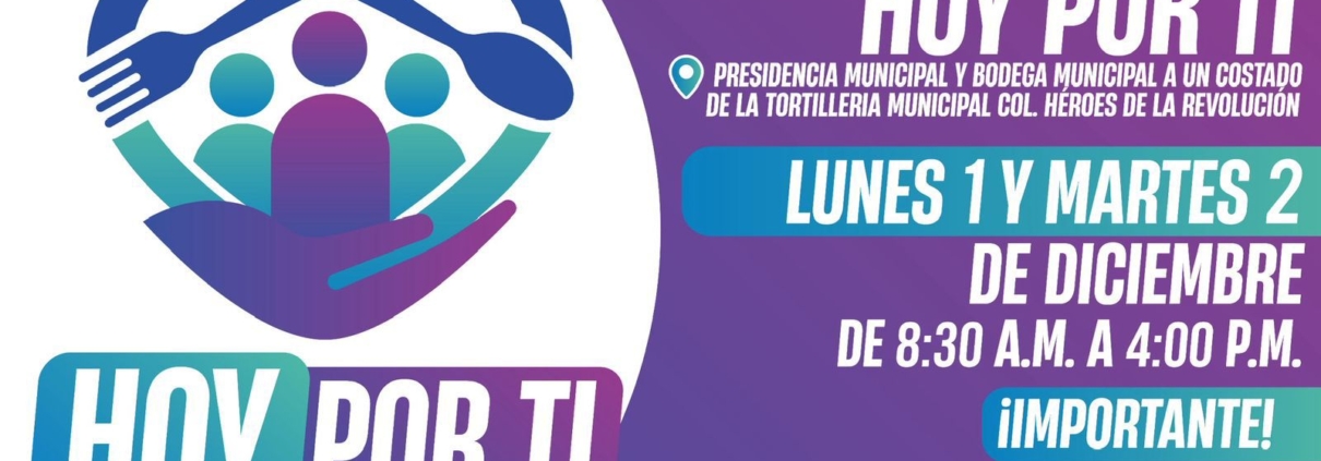 El Gobierno de Parral, a través de la Dirección de Desarrollo Humano y Bien Común, da a conocer la programación oficial para la entrega de despensas correspondientes al programa Hoy Por Ti, la cual se realizará este lunes 01 y martes 02 de diciembre, respetando los lineamientos establecidos para asegurar que el apoyo llegue a quienes más lo necesitan.