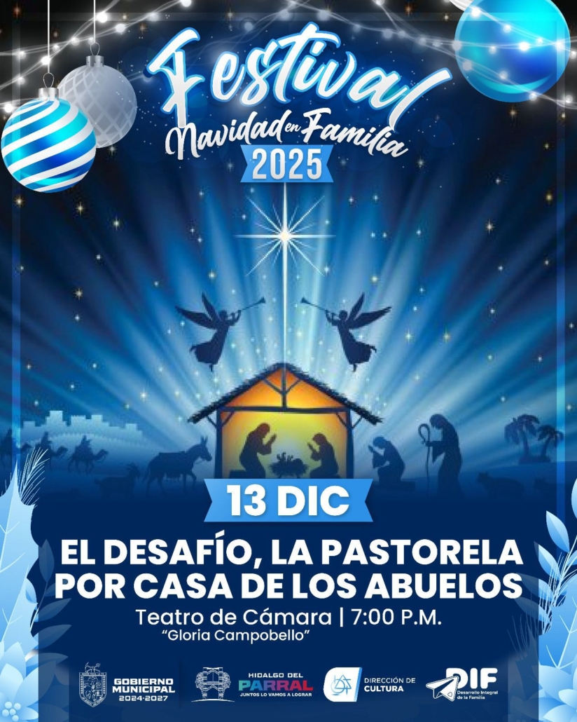 El Gobierno de Parral, a través de la Dirección de Cultura, invita a la población a disfrutar de la espectacular presentación de la pastorela “El Desafío”, a cargo de integrantes del grupo de teatro de la Casa de los Abuelos, como parte de las actividades del Festival Navidad en Familia.